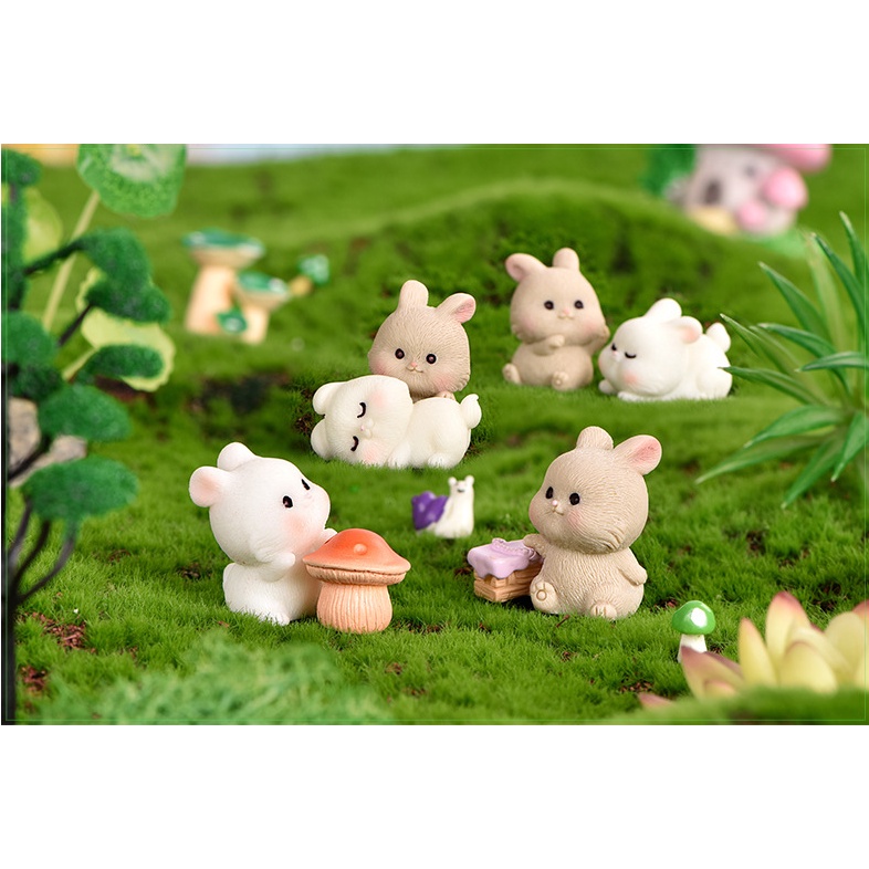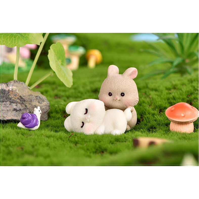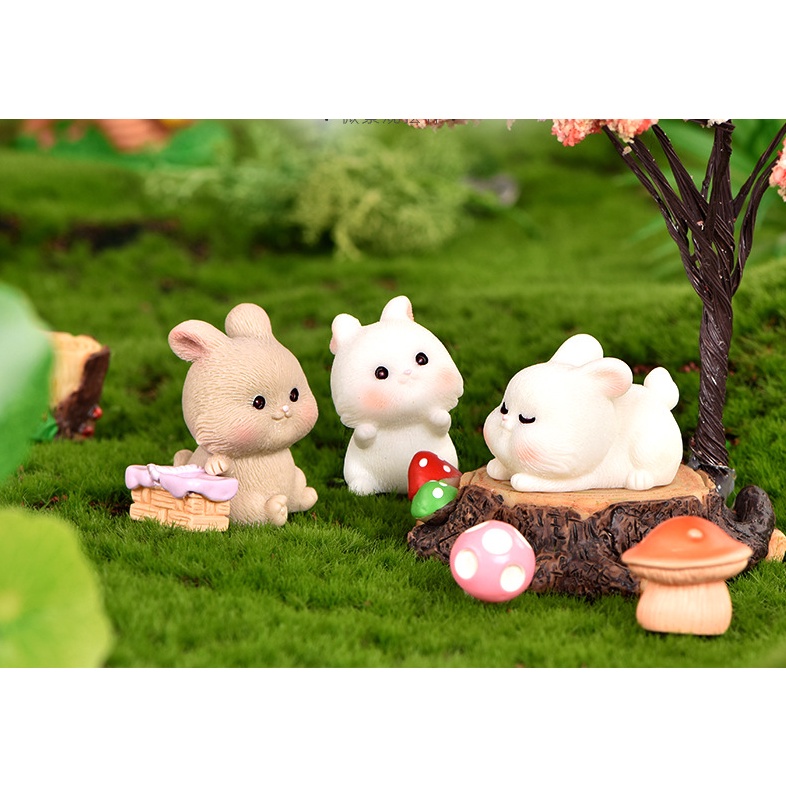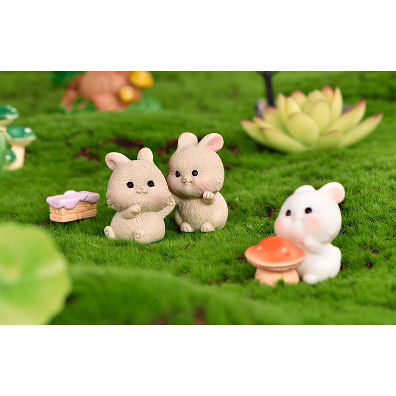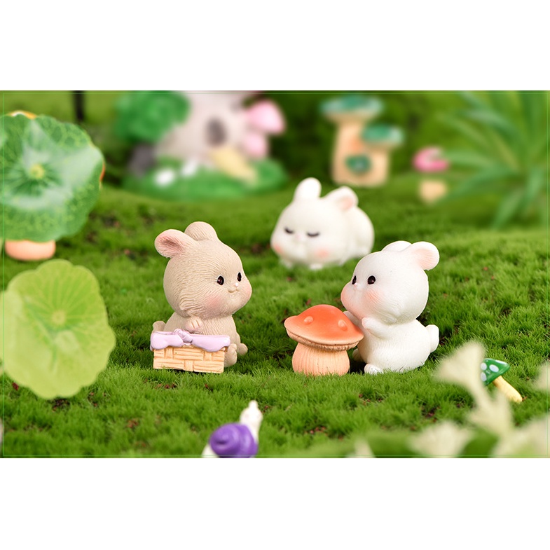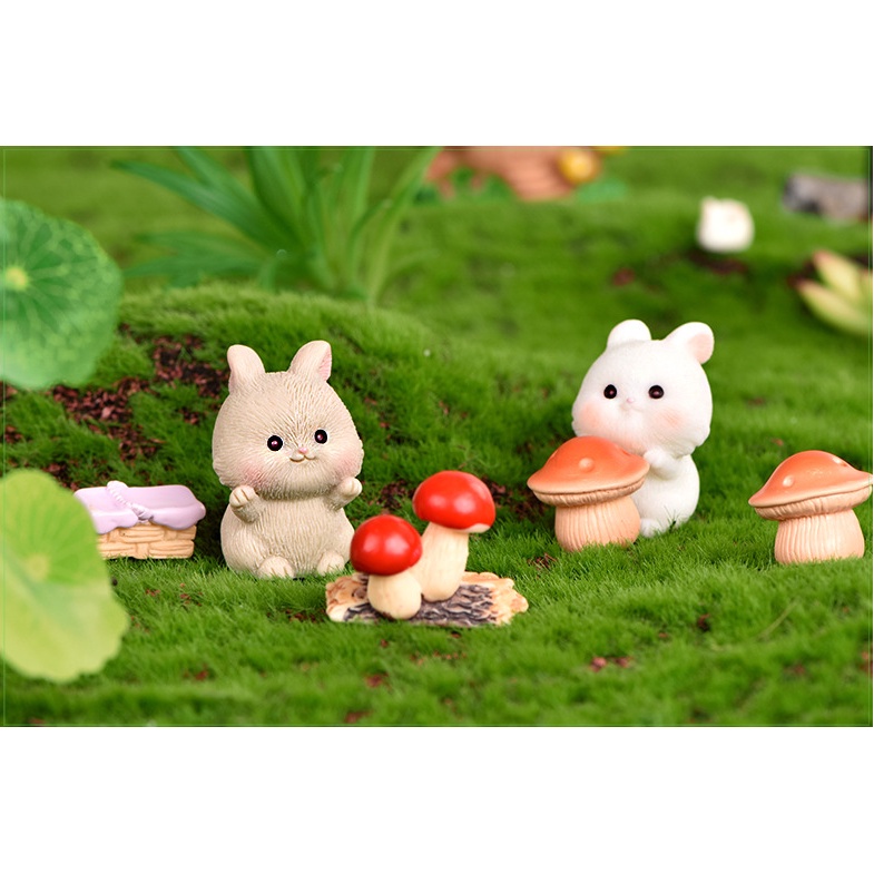 Mô hình thỏ bông đáng yêu đi hái nấm cho các bạn trang trí tiểu cảnh, bonsai, terrarium, DIY