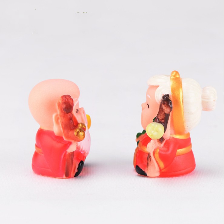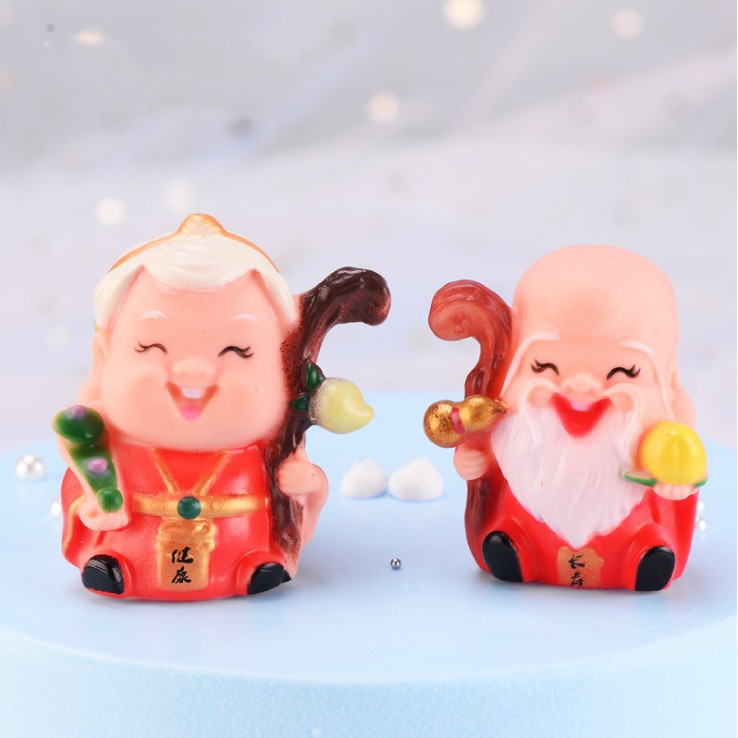 Mô hình Thọ ông, Thọ bà và Đào tiên trang trí bánh mừng thọ người lớn, trang trí tiểu cảnh, terrarium, móc khóa, DIY