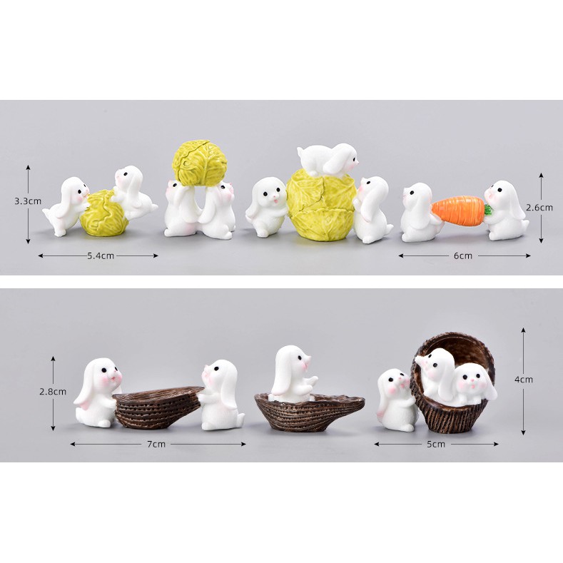 Mô hình thỏ trắng làm nông nghiệp (thu hoạch bắp cải, chèo thuyền, khiêng cà rốt) trang trí tiểu cảnh, terrarium, DIY