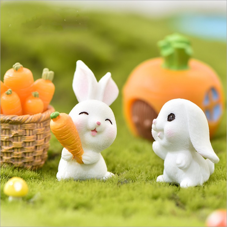 Mô hình thỏ trắng thu hoạch cà rốt trang trí tiểu cảnh, terrarium, DIY
