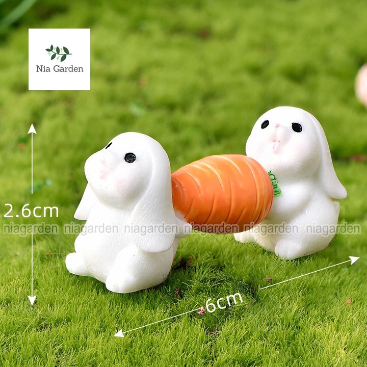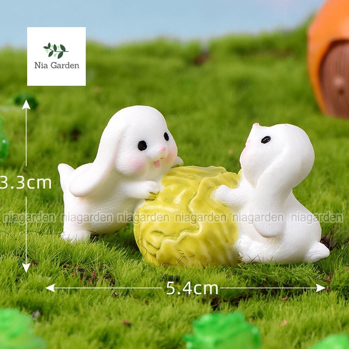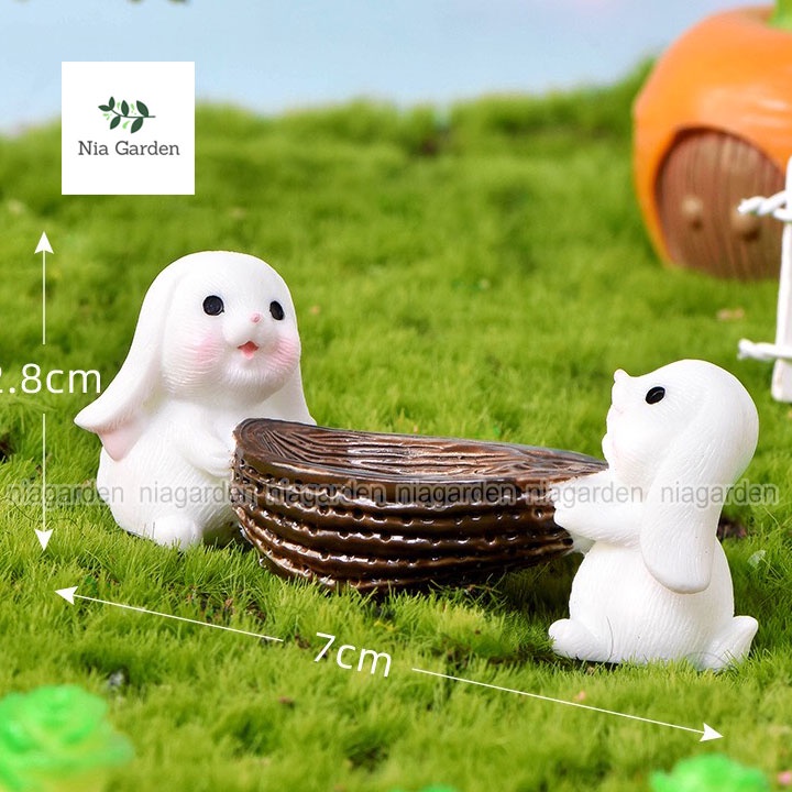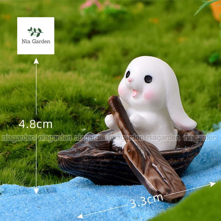 Mô hình thỏ trang trí vườn chậu cây mini bể cá tiểu cảnh thỏ ôm cà rốt bắp cải chèo thuyền Nia Garden N5