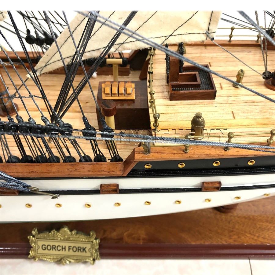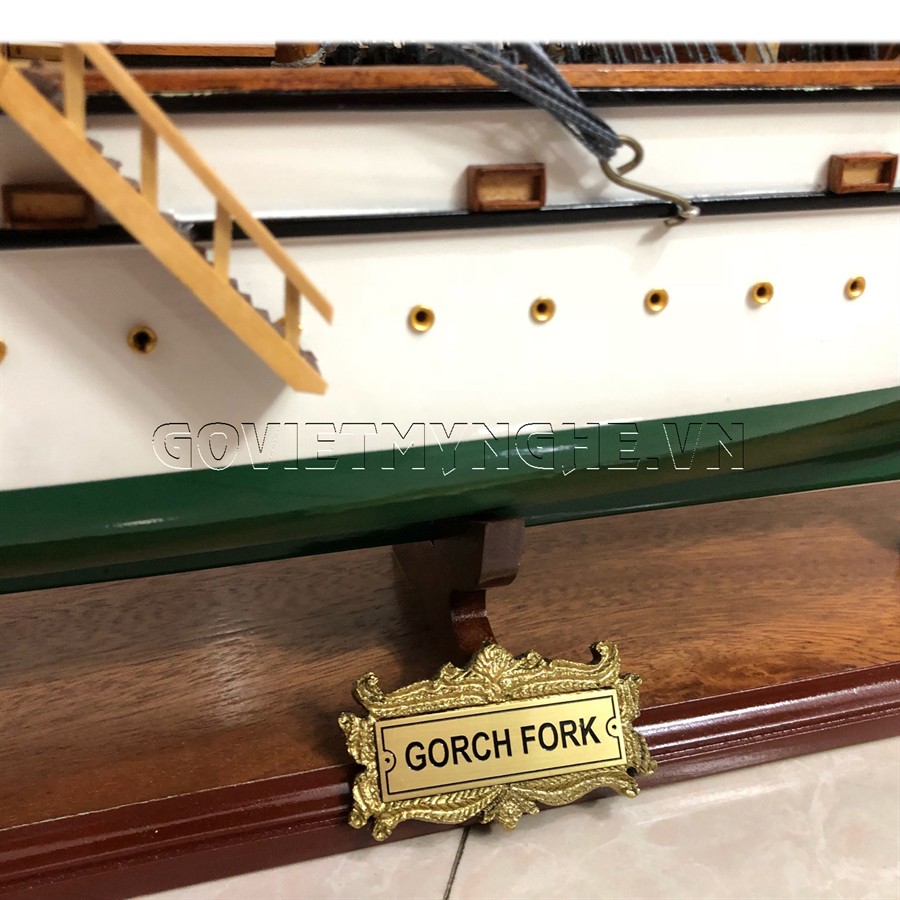 - Thuyền được đính kèm theo 1 bảng tên tàu trên đế gỗ " GORCH FORK"