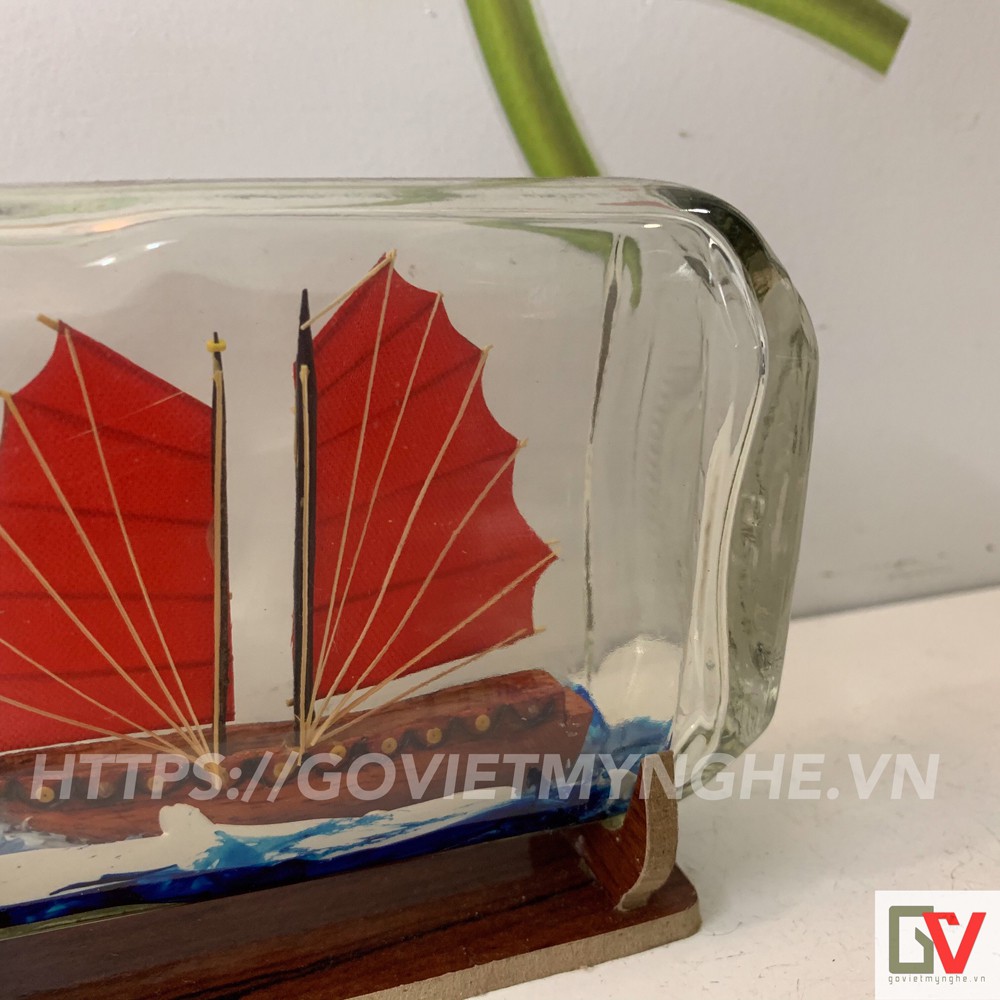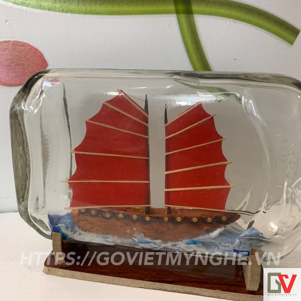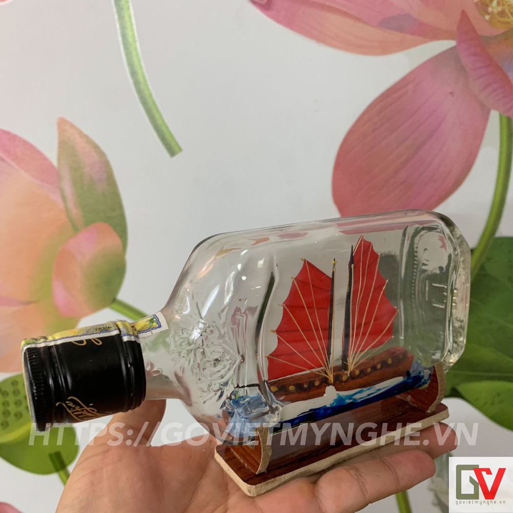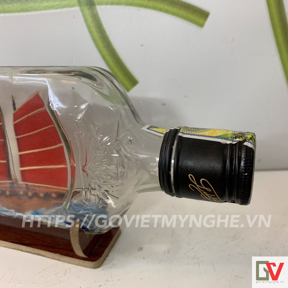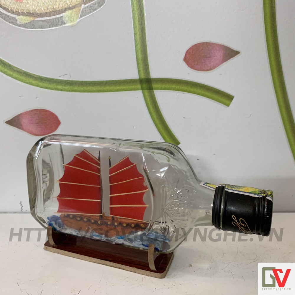 Mô hình thuyền gỗ Hạ Long trong chai thủy tinh - Mỹ nghệ làm bằng tay không cắt đít chai