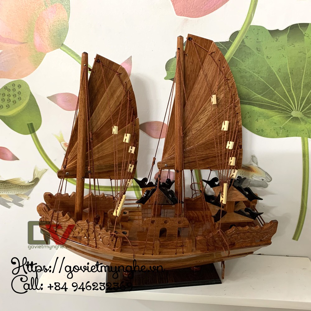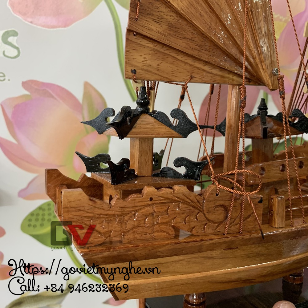 + 01 Mô hình thuyền gỗ Tàu buôn cổ Hạ Long Rồng - Gỗ Hương - Thân tàu dài 40cm - Buồm gỗ