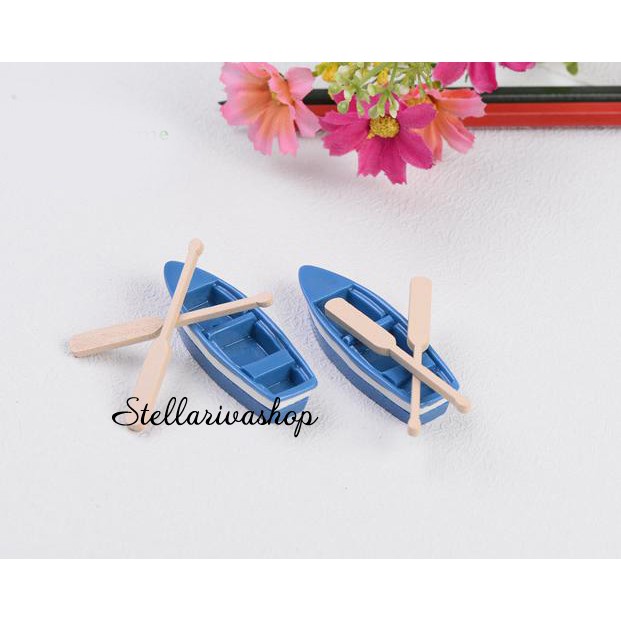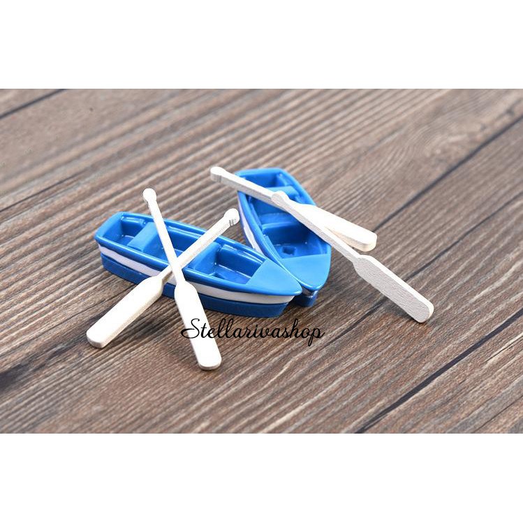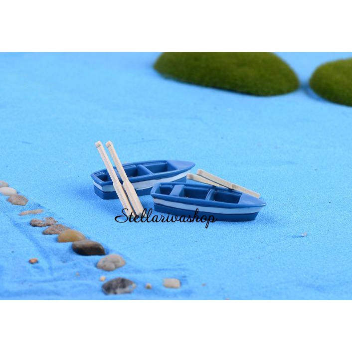 Mô hình Thuyền xanh và mái chèo trang trí tiểu cảnh, terrariumSize 6cm