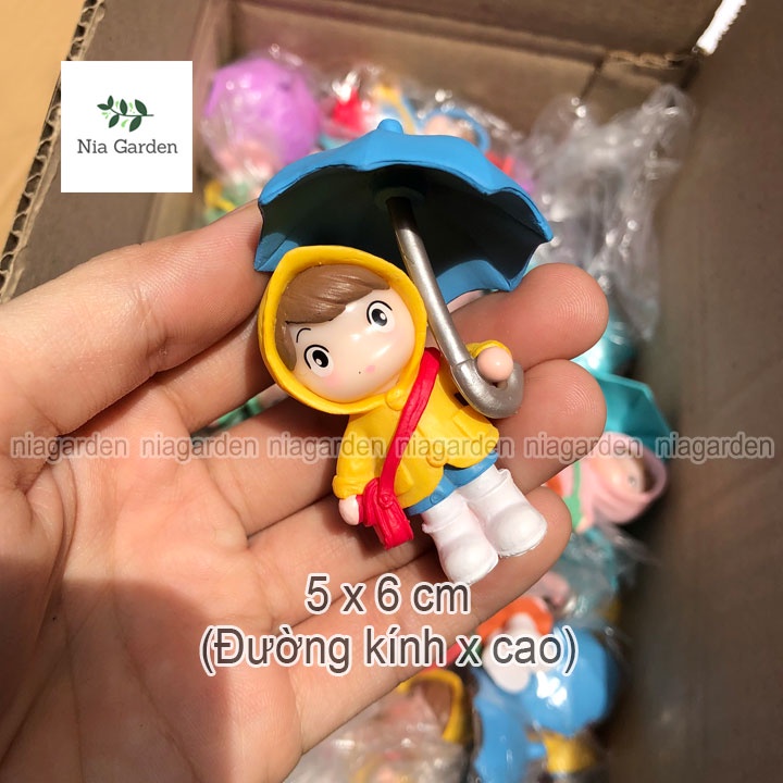Mô hình tiểu cảnh em bé cầm ô tượng mini trang trí vườn chậu cây terarium hồ cá Nia Garden N5