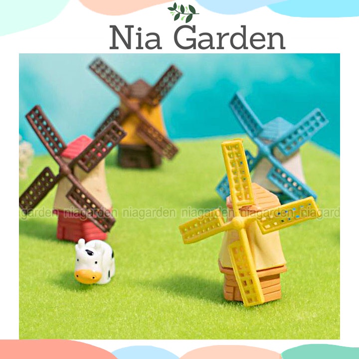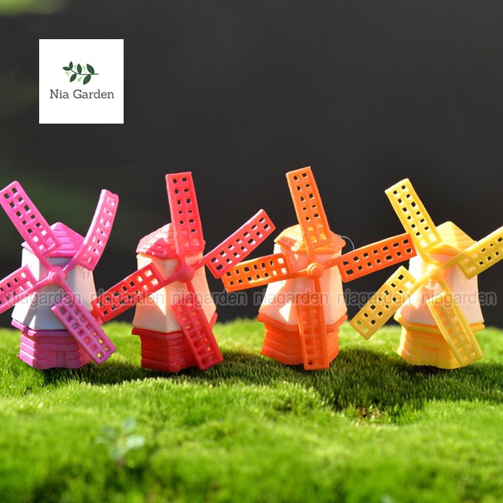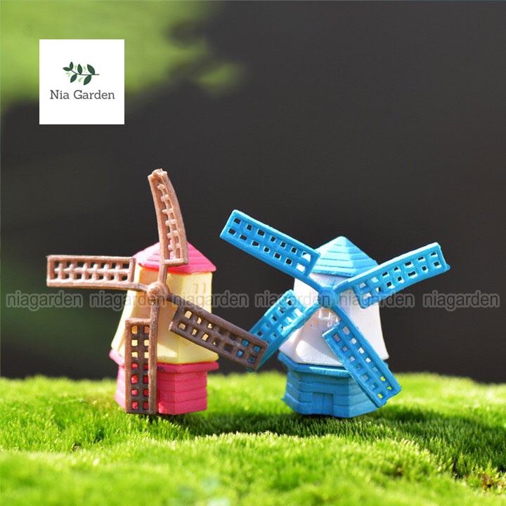 Mô hình tiểu cảnh mini cối xoay gió trang trí chậu cây vườn terrarium bể cá Nia Garden N5