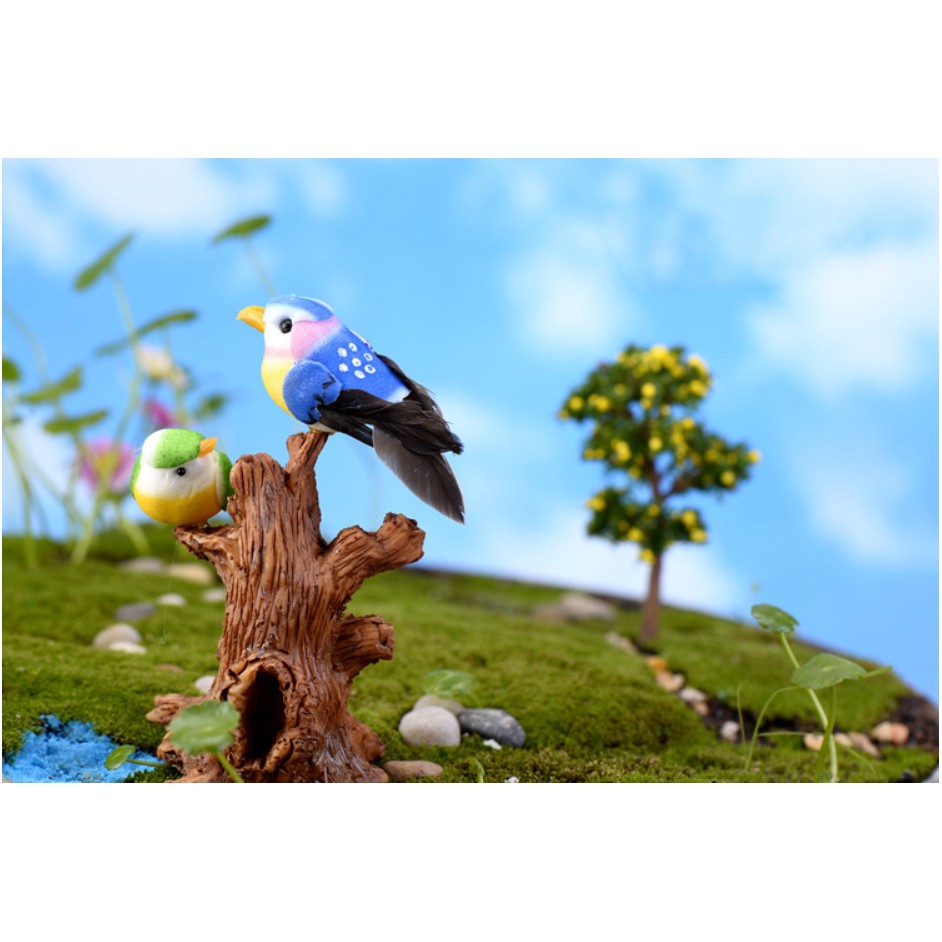 Mô hình tổ chim, trứng, chim hoàng oanh bằng lông chim tự nhiên trang trí tiểu cảnh, bonsai, DIY