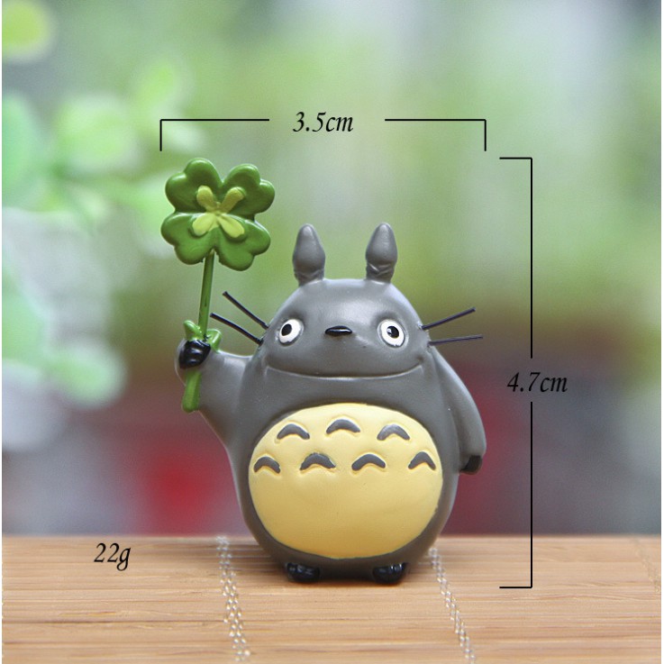 Mô hình Totoro cầm cỏ bốn lá Clover cho các bạn trang trí tiểu cảnh, terrarium, DIY