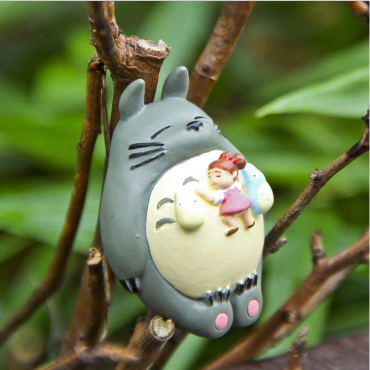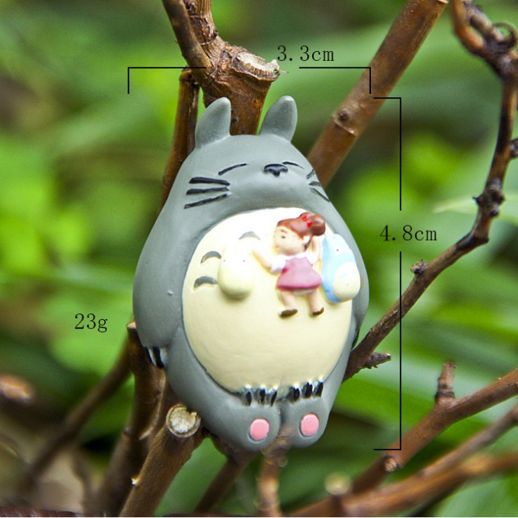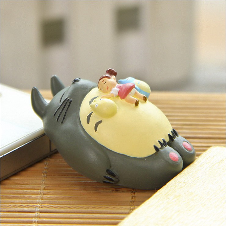 Mô hình Totoro nằm ngủ với bé Tiểu Mai nằm trên bụng trang trí tiểu cảnh, bonsai, móc khóa