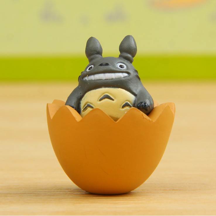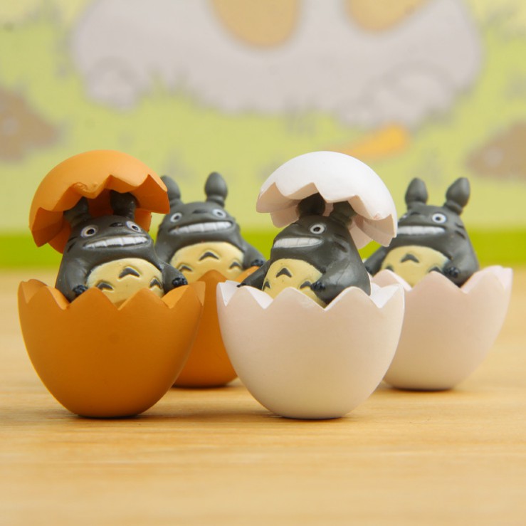 Totoro ngồi trong vỏ trứng trắng và vỏ trứng vàng với 2 phiên bản là đội vỏ trứng và không đội vỏ.Kích thước: 4 x 3cm