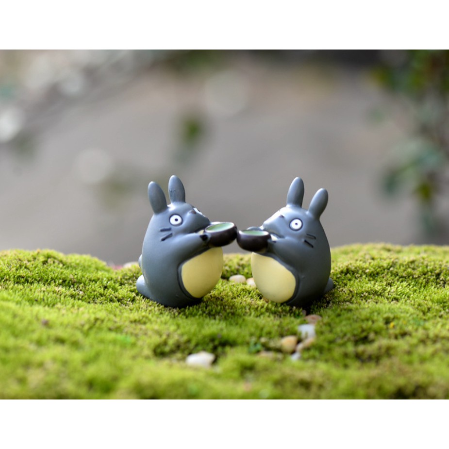 Mô hình Totoro uống trà dùng trang trí tiểu cảnh, bonsai, móc chìa khóa