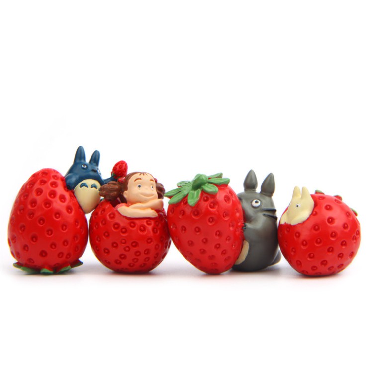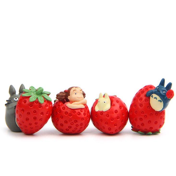 Mô hình Totoro và quả dâu tây thích hợp trang trí tiểu cảnh, bonsai, móc chìa khóa, DIY