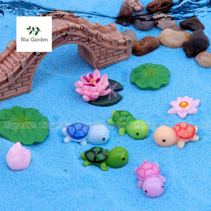 Mô hình trang trí hồ cá hoa sen cá koi tiểu cảnh mini decor chậu cây vườn terrarium Nia Garden N5