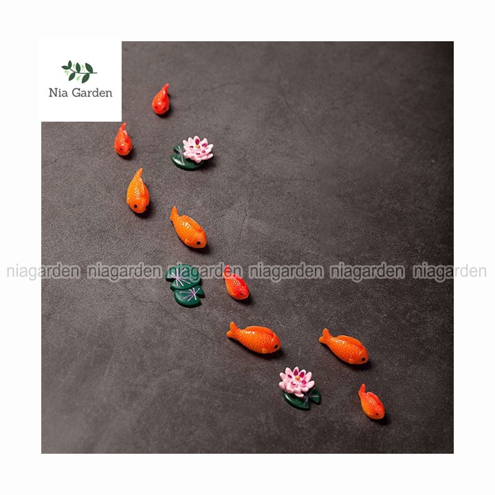 Giới thiệu Mô hình trang trí hồ cá hoa sen cá koi tiểu cảnh mini decor chậu cây vườn terrarium Nia Garden N5