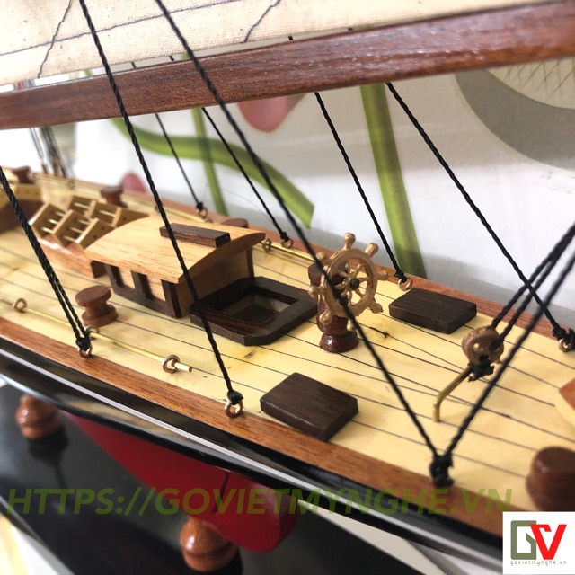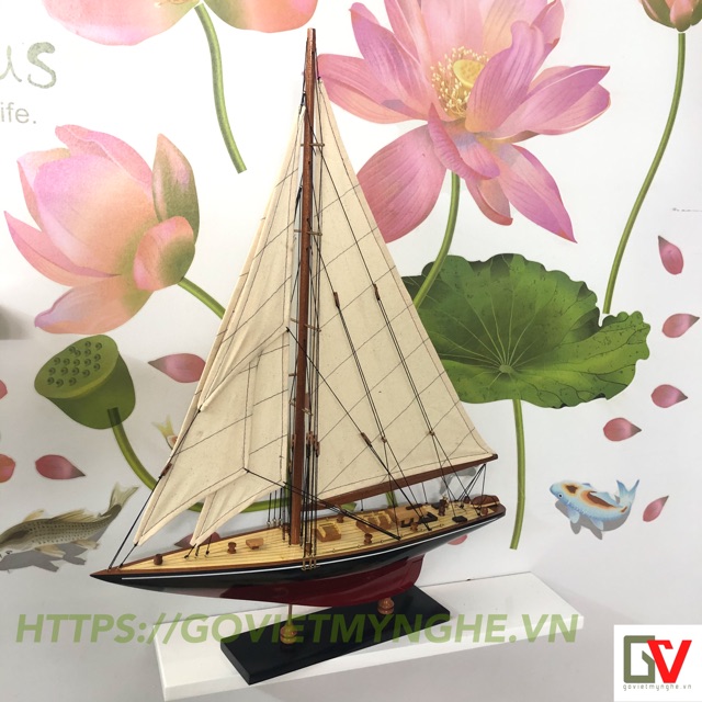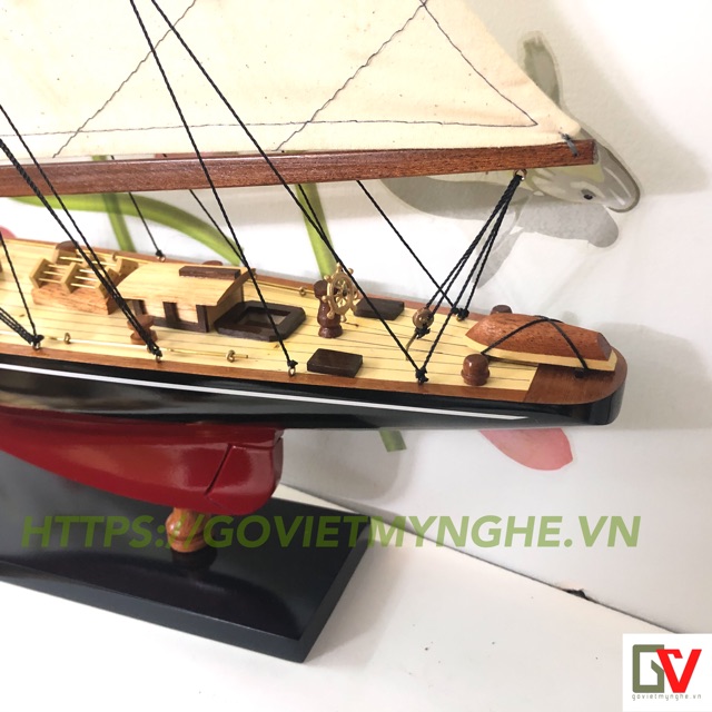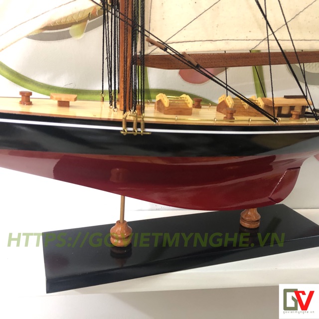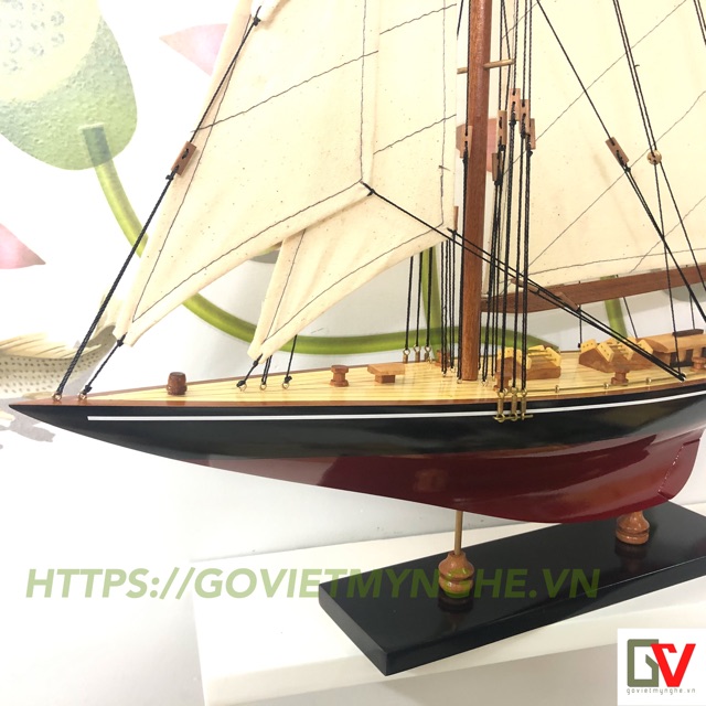 Nhà cửa & Đời sống > Nội thất > Khác || Mô hình trang trí tàu thuyền gỗ - du thuyền đua Shamrock V - Thân dài 50cm - Sơn Đen/ĐỏCòn hàng