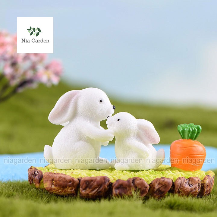 Nhà cửa & Đời sống > Làm vườn > Trang trí vườn || Mô hình trang trí tiểu cảnh chậu cây thỏ trắng mini mẹ con Nia Garden N5Còn hàng