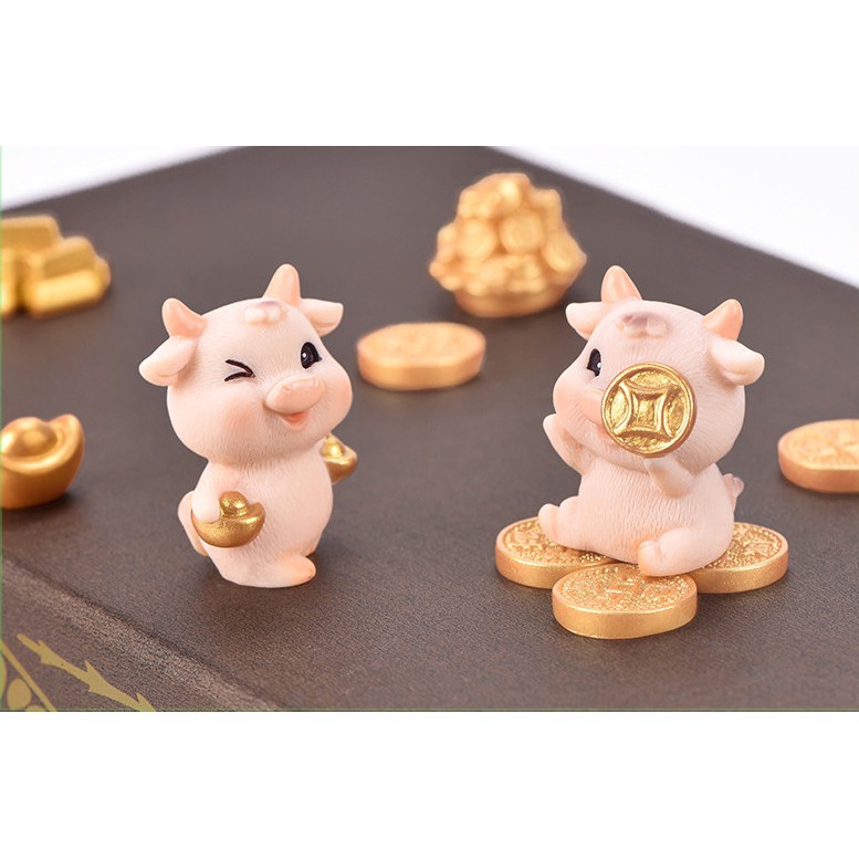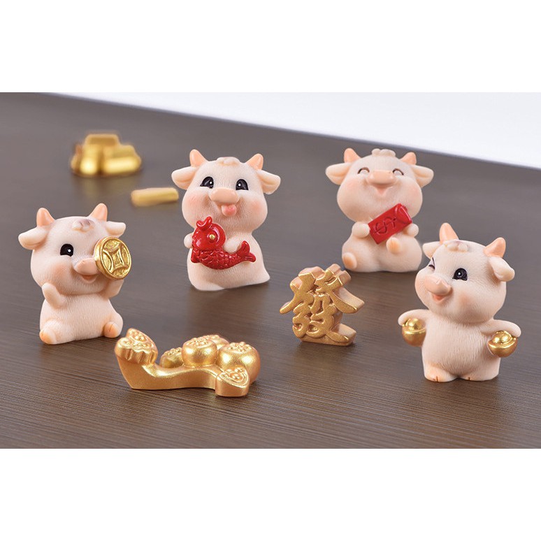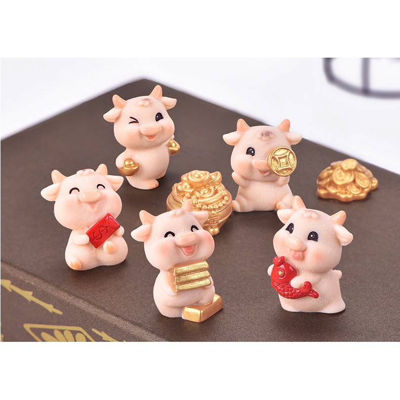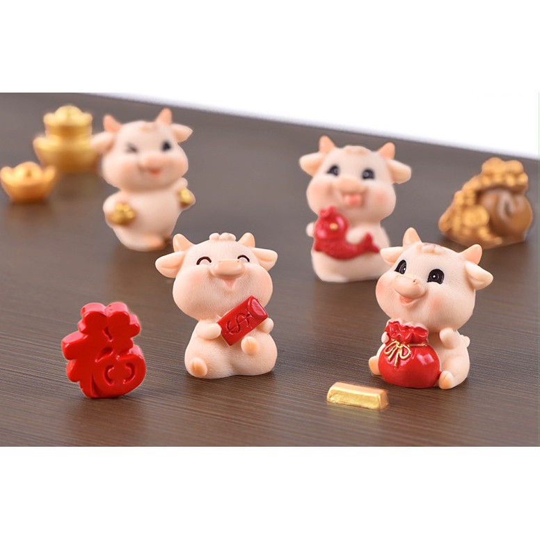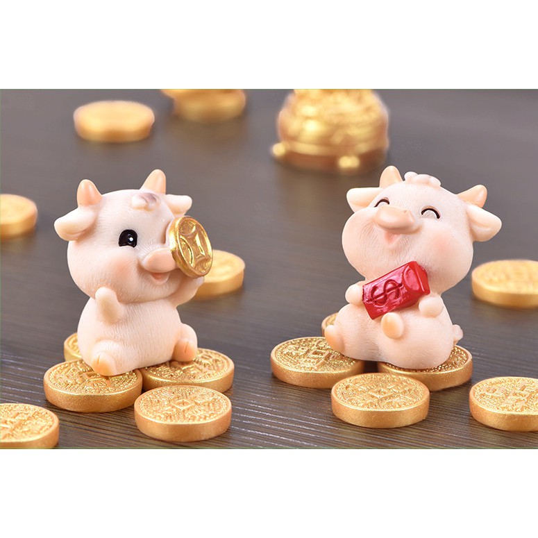 Mô hình Trâu ôm vàng, trâu lì xì trang trí tiểu cảnh tết tân Sửu