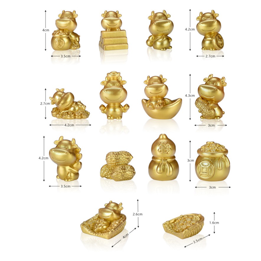 Giới thiệu Mô hình trâu vàng Tân Sửu sang trọng trang trí tiểu cảnh, móc khóa, DIY