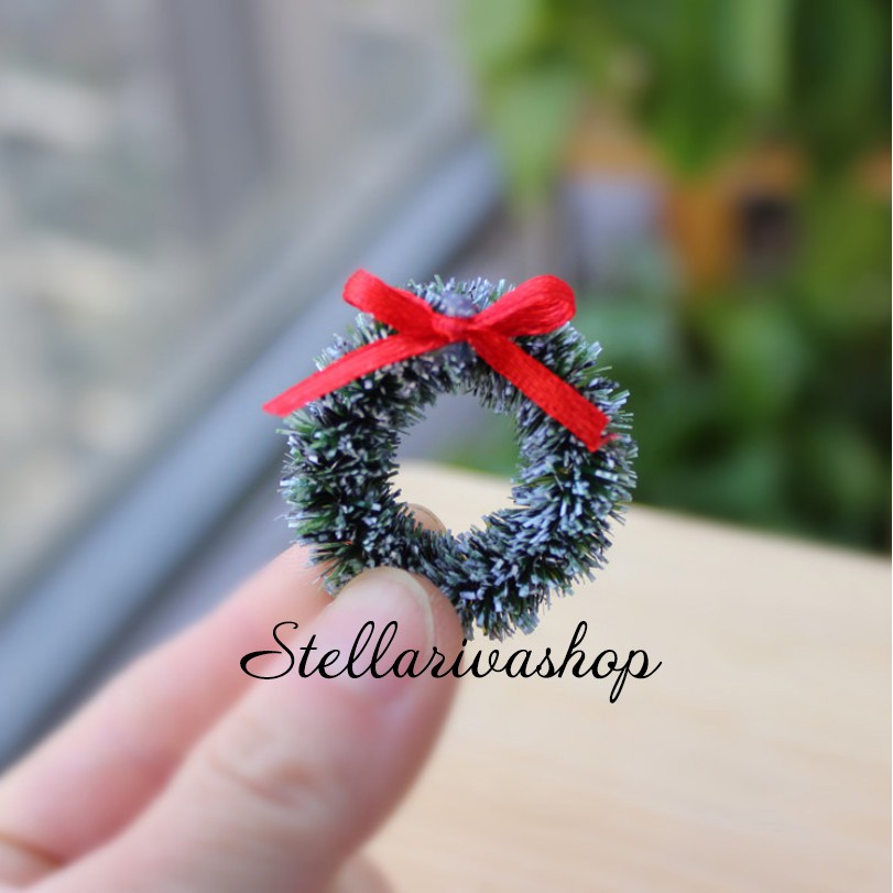 Mô hình vòng nguyệt quế treo cửa trang trí tiểu cảnh terrarium chủ đề giáng sinhSize ~4cm