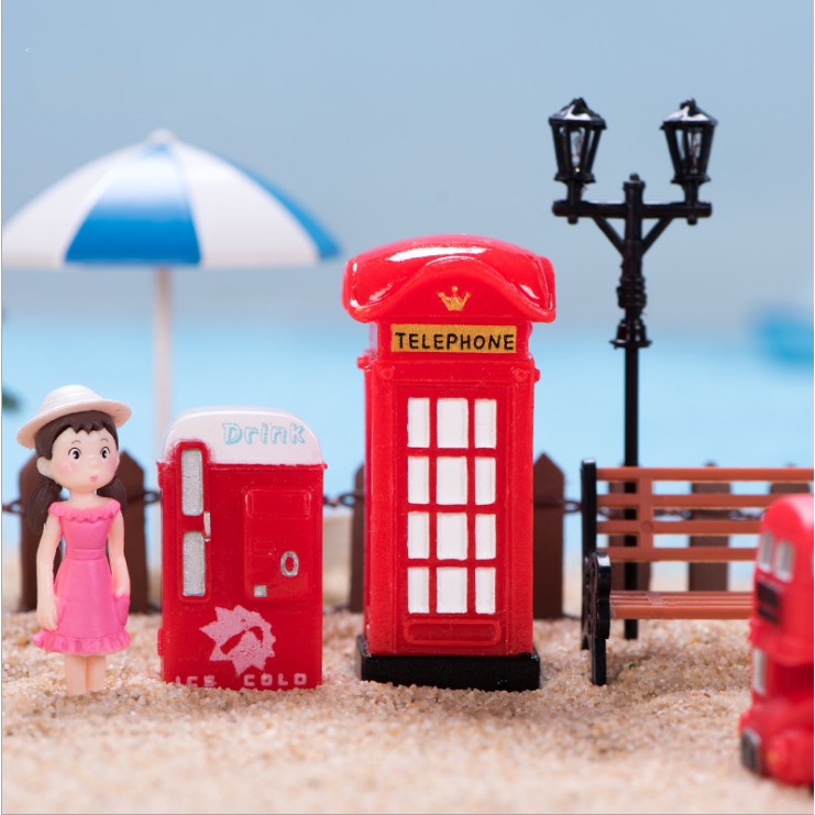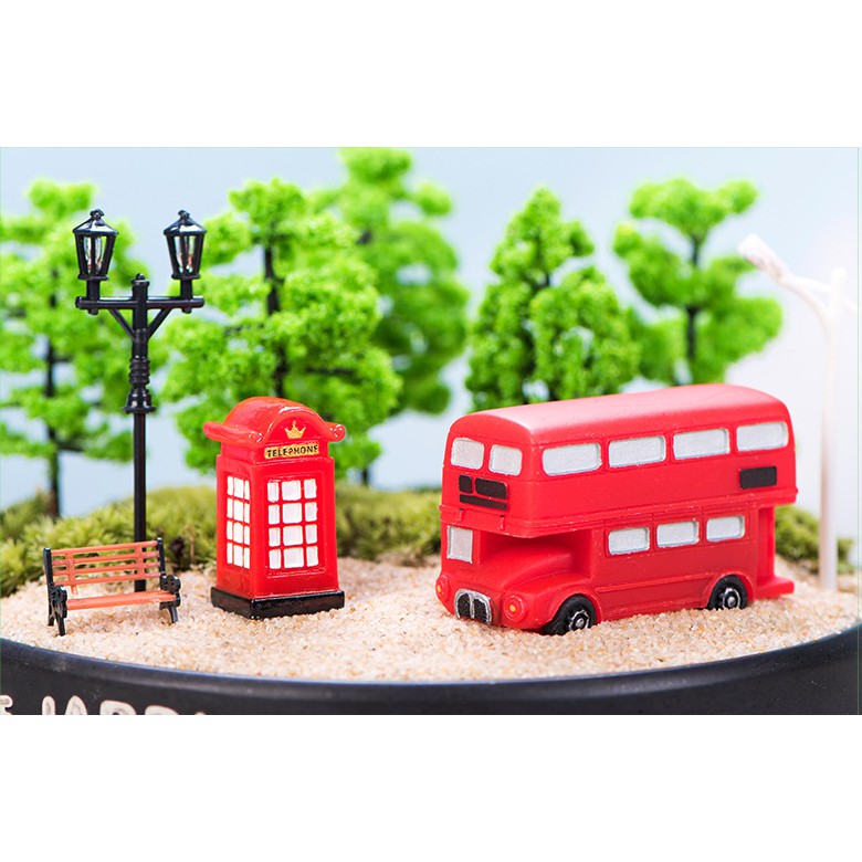 Mô hình xe buýt hai tầng, trạm xăng, hộp thư phong cách châu Âu dùng trang trí tiểu cảnh, terrarium, DIY