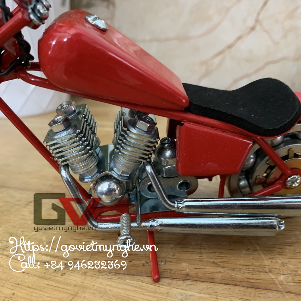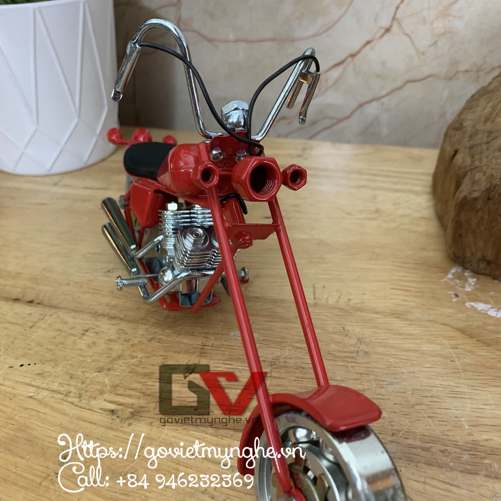 Mô hình xe mô tô sắt mỹ nghệ - xe mô hình sắt mỹ nghệ Harley Davidson Chopper - Dài 23cm - màu đỏ