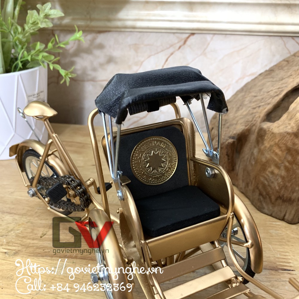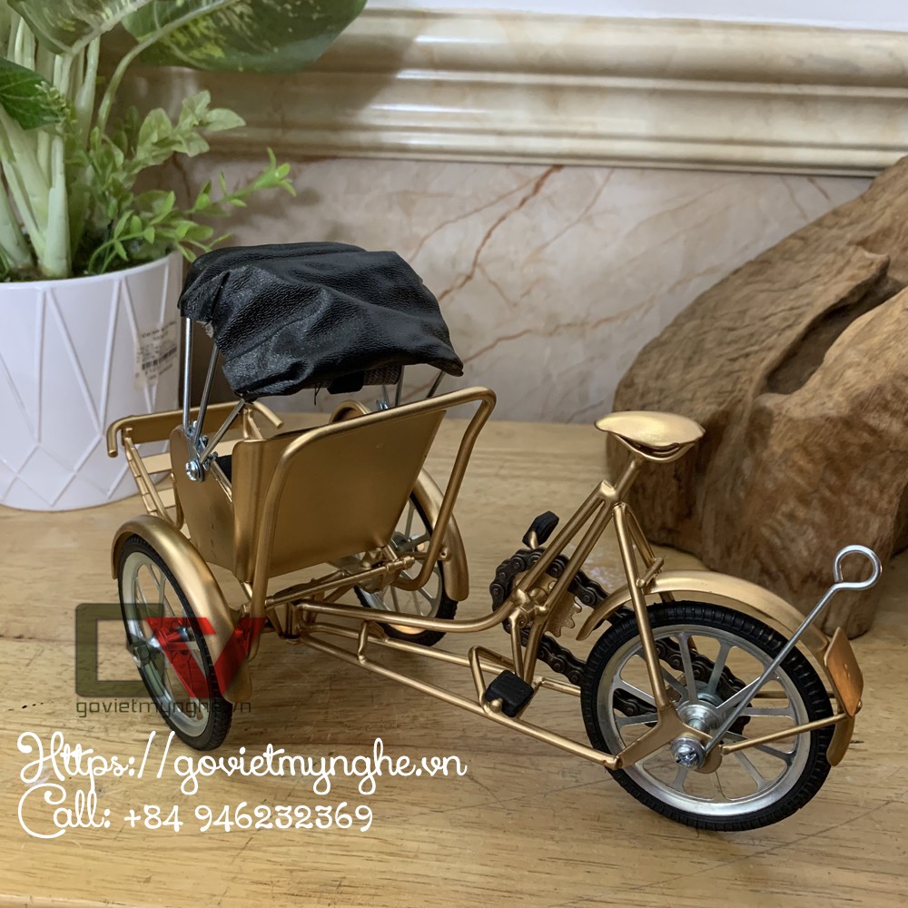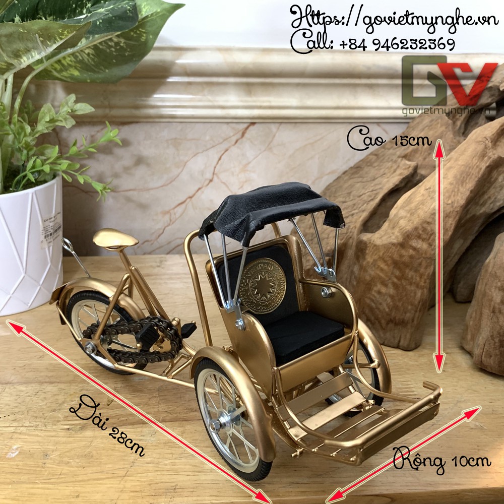Mô hình xe xích lô sắt trang trí quà tặng đối tác phong cách Việt Nam - Dài 28cm - Màu nhũ đồng