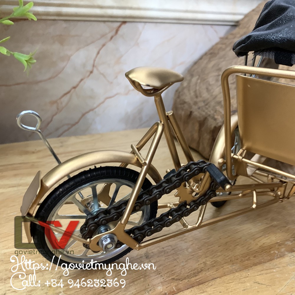 + Mô hình xe xích lô sắt trang trí quà tặng đối tác phong cách Việt Nam - Dài 28cm - Màu nhũ đồng