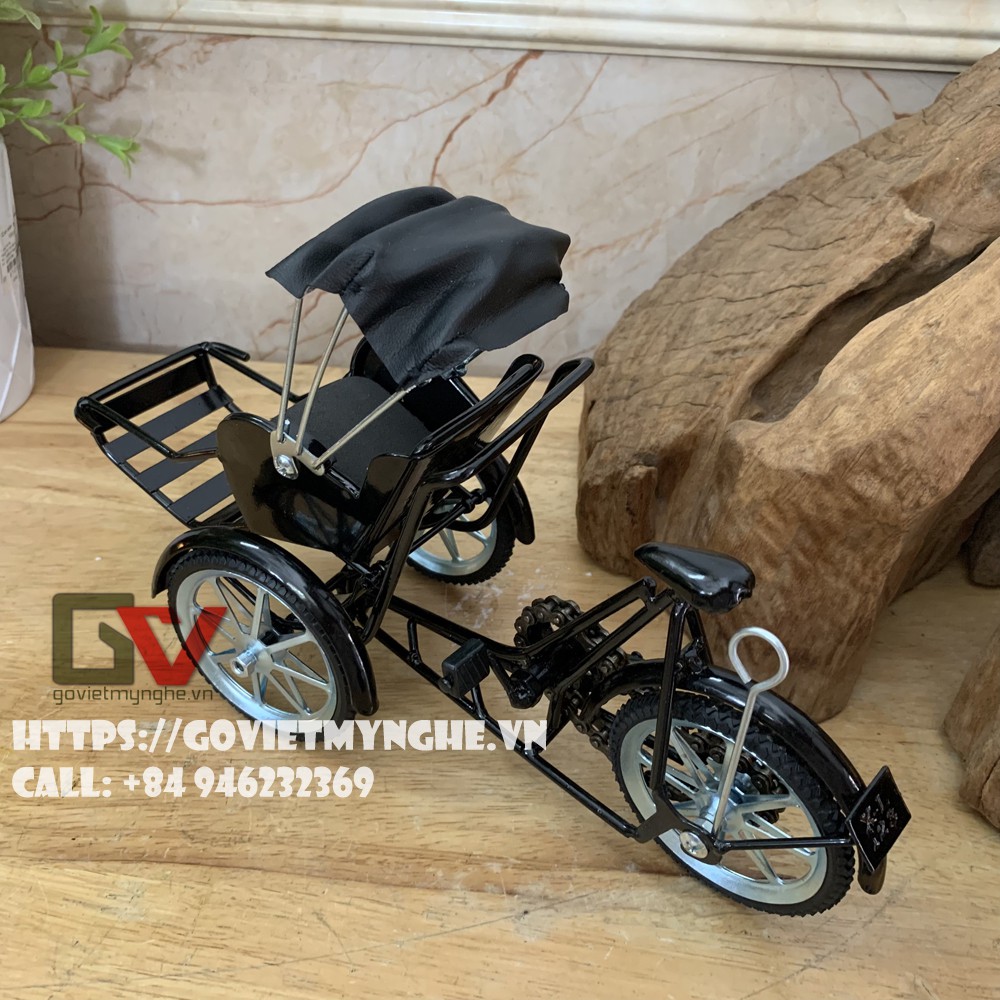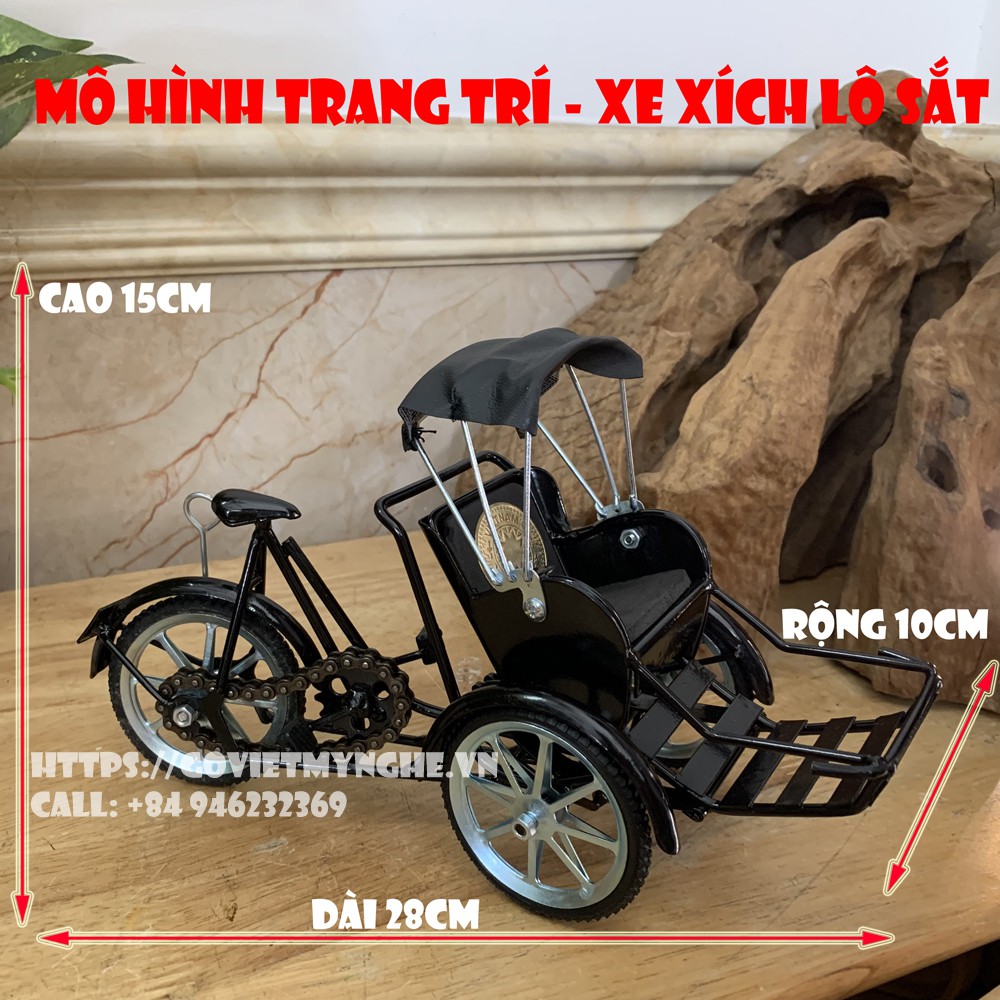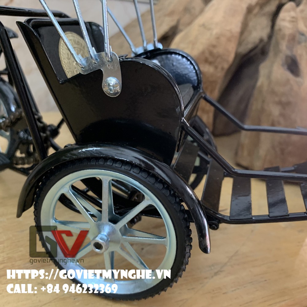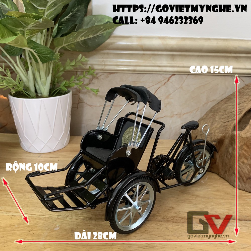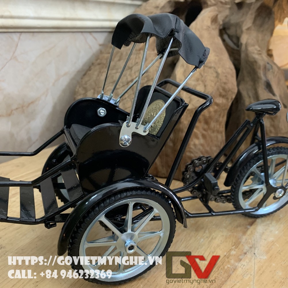 Mô Hình Xe Xích Lô Sắt Trang Trí Nhà Cửa - Size Lớn- Dài 28cm - Màu Sơn Đen Sắt Không Gỉ - Mỹ Nghệ Sắt Việt Nam