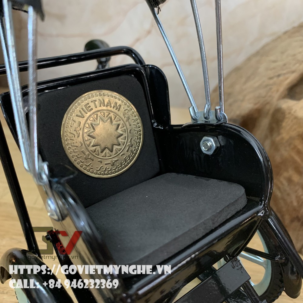 + Mô hình xe Xích Lô Sắt được phun lớp sơn PU và phủ sơn đen, làm cho sản phẩm sáng bóng hơn.