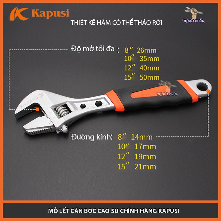 Mỏ lết cán bọc cao su có tích hợp cờ lê đa năng chính hãng KAPUSI NHẬT BẢN cao cấp - HÀNG XỊNMỏ lết Kapusi đủ size hàng chất lượng - Thép Crv tôi siêu cứng