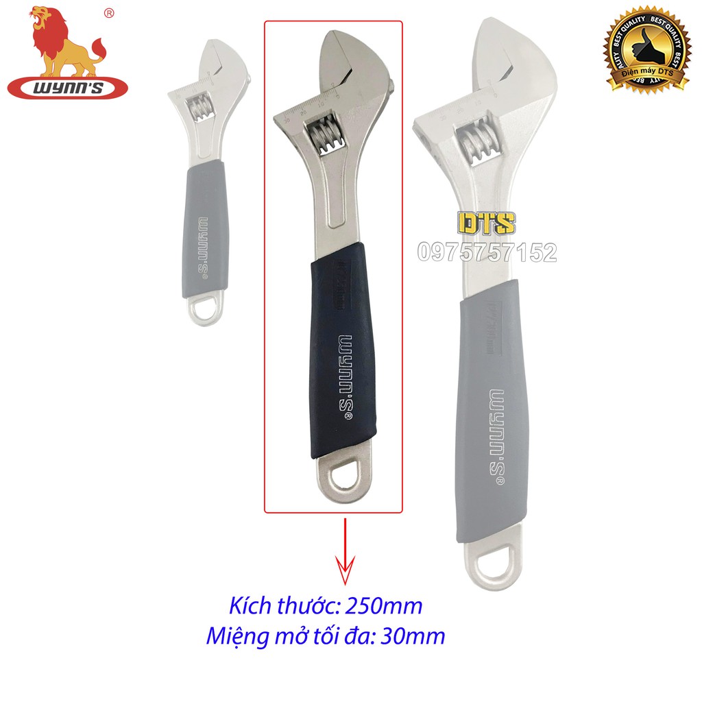 Mỏ lết cán bọc nhựa cứng PVC tăng cường WYNN’S 250mm, cờ lê điều chỉnh độ mở đa năng, thép Cr-V không gỉ xỷ lý nhiệt