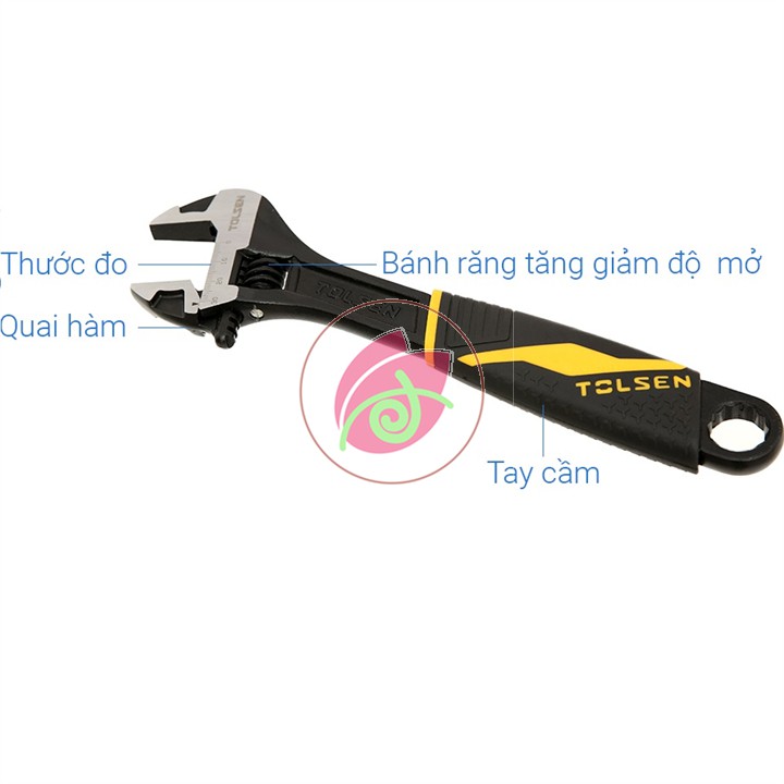 Mỏ lết Tolsen thích hợp dùng để tháo mở bu lông, đai ốc trong gia đình, các ngành công nghiệp, xây dựng, các xưởng sửa chữa, cơ khí.
