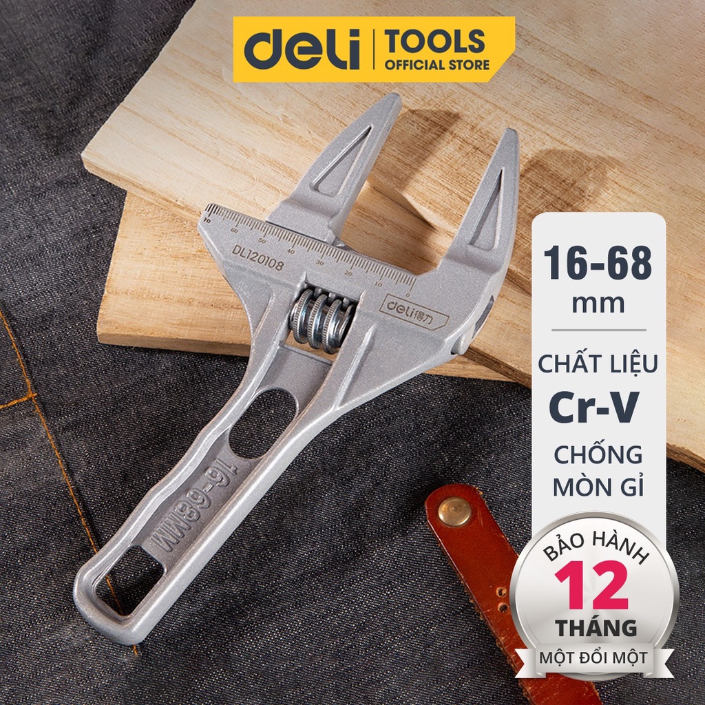Giới thiệu Mỏ Lết Đa Năng Deli Cao Cấp 16-68mm - Tiện Dụng Cho Công Việc Sửa Chữa - Chất Liệu Thép Chống Ăn Mòn Chắc Chắn DL120108
