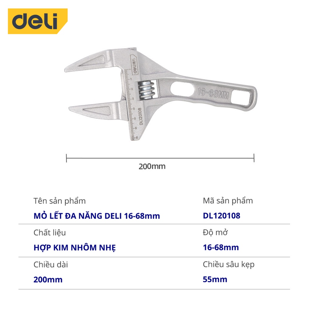 MỎ LẾT ĐA NĂNG 16-68MM DELI TOOLS CAO CẤP DL120108THÔNG TIN SẢN PHẨM