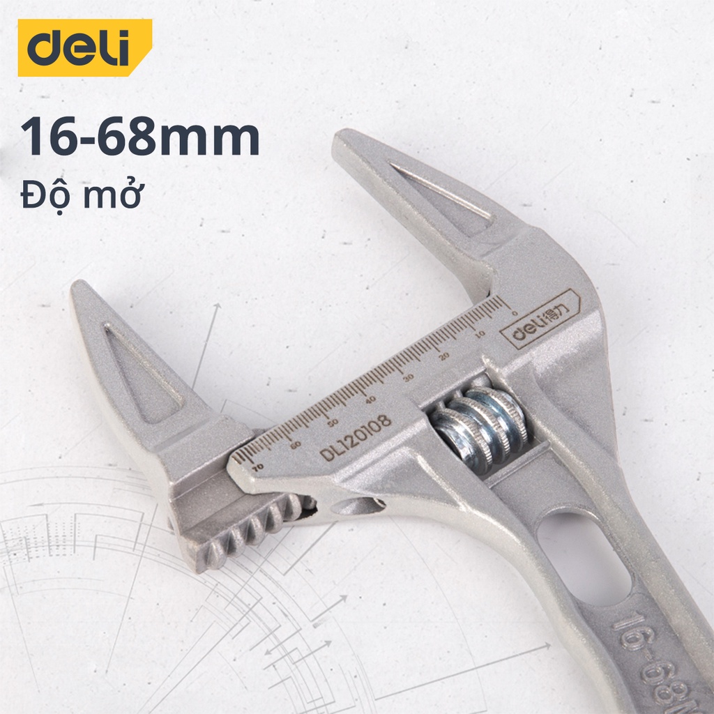Giới thiệu Mỏ Lết Đa Năng Deli Cao Cấp 16-68mm - Tiện Dụng Cho Công Việc Sửa Chữa - Chất Liệu Thép Chống Ăn Mòn Chắc Chắn DL120108