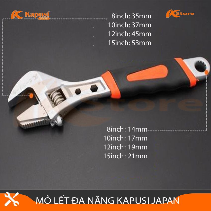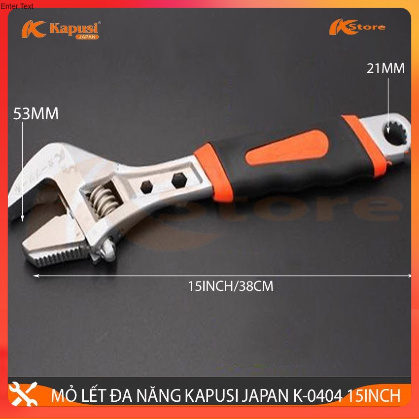 - Mỏ lết đa năng Kapusi Japan K-0404 15inch là dụng cụ tuyệt vời không thể thiếu trong bộ dụng cụ của mỗi thợ sửa chữa, là dụng cụ hữu dụng giúp người ban sửa chữa đồ đạc trong nhà một cách dễ dàng.