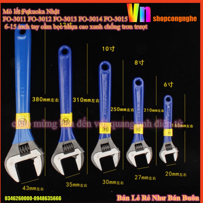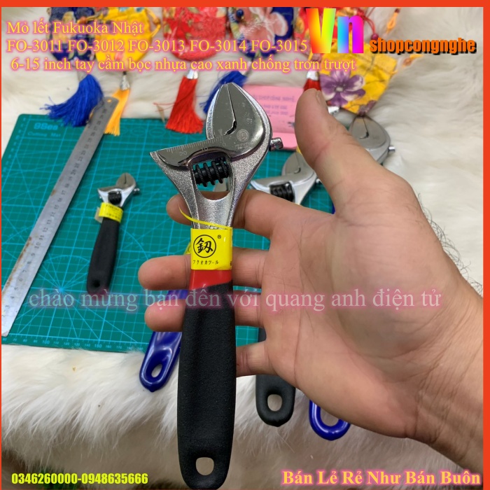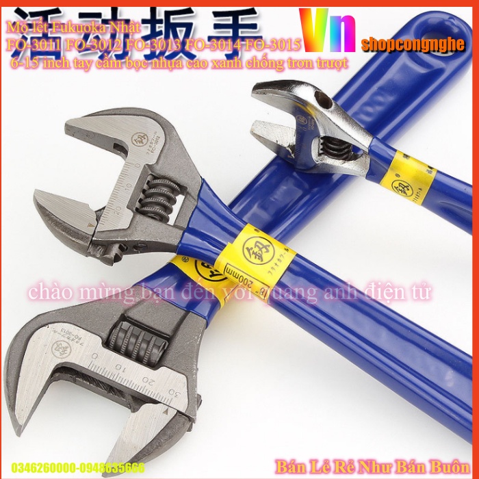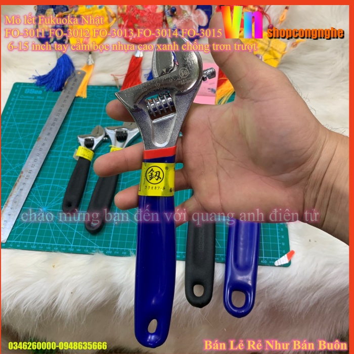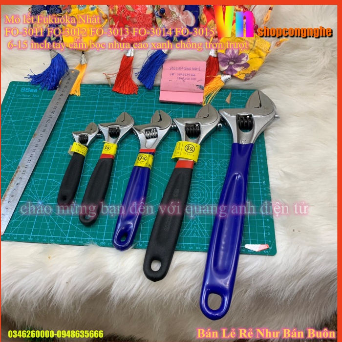 Nhà cửa & Đời sống > Dụng cụ & Thiết bị tiện ích > Dụng cụ > Bộ cờ lê || Mỏ lết Fukuoka Nhật FO-3011 FO-3012 FO-3013 FO-3014 FO-3015 6-15 inch tay cầm bọc nhựa cao xanh chống trơn trượtCòn hàng