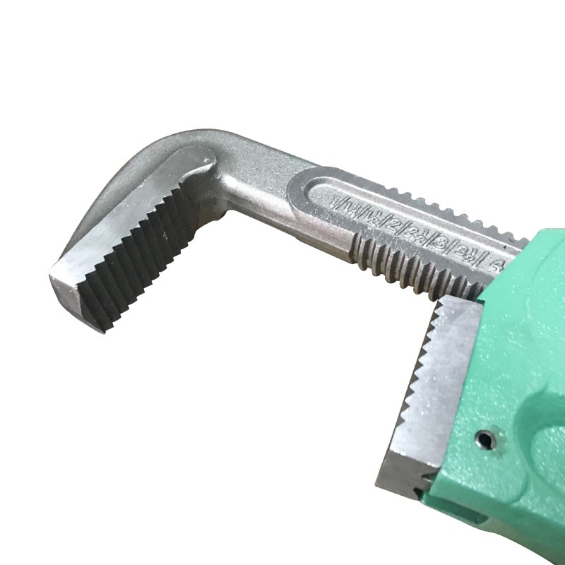 Phần đầu mỏ lết răng được thiết kế nhiều răng bảng lớn, giúp giữ chặt được bu lông ống nước cần vặn
