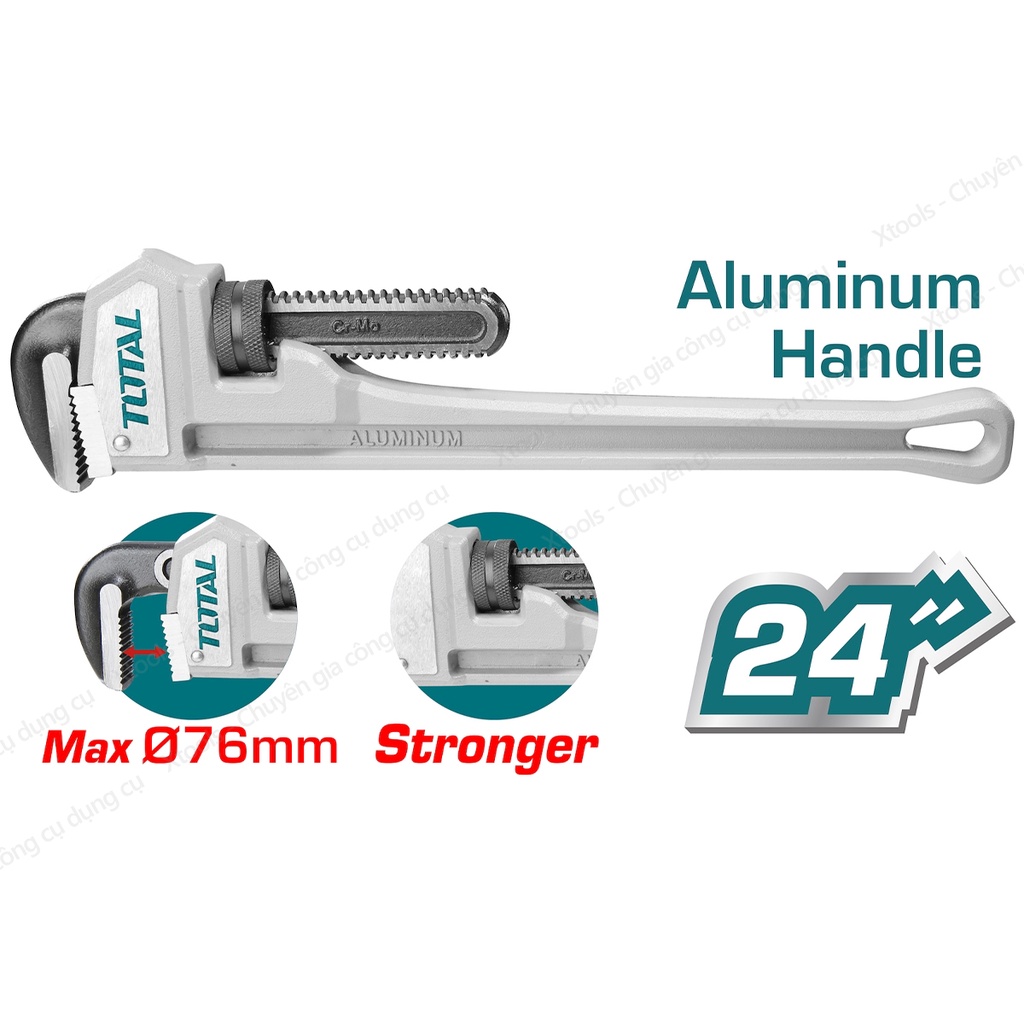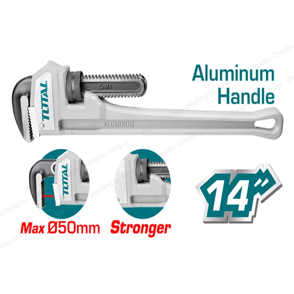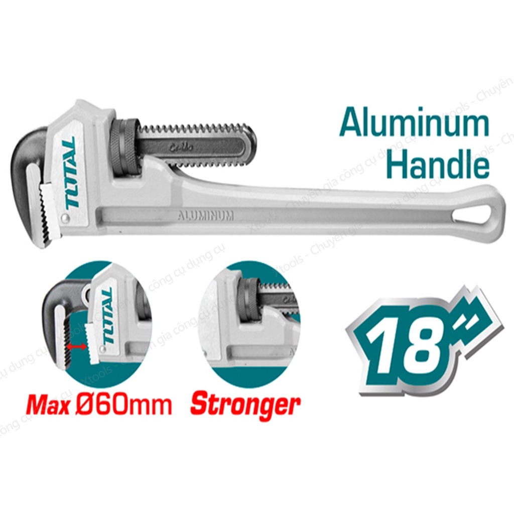 Mỏ lết răng tay cầm nhôm TOTAL thép Cr-V siêu cứng chống rỉ vặn mở bulong đai ốc sửa chữa cơ khí ống nước máy móc