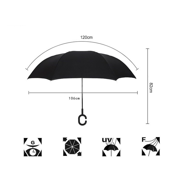 Không làm ướt sàn ô tô, sàn nhà: chỉ cần đóng dù, dốc ngược cánh dù ra ngoài, nước sẽ thoát hoàn toàn và bạn có thể bỏ dù lại mà bạn không sợ ướt tay. Đó là nhờ thiết kế sáng tạo đồng thời chất liệu dù không thấm nước, chia làm 2 lớp thông minh.