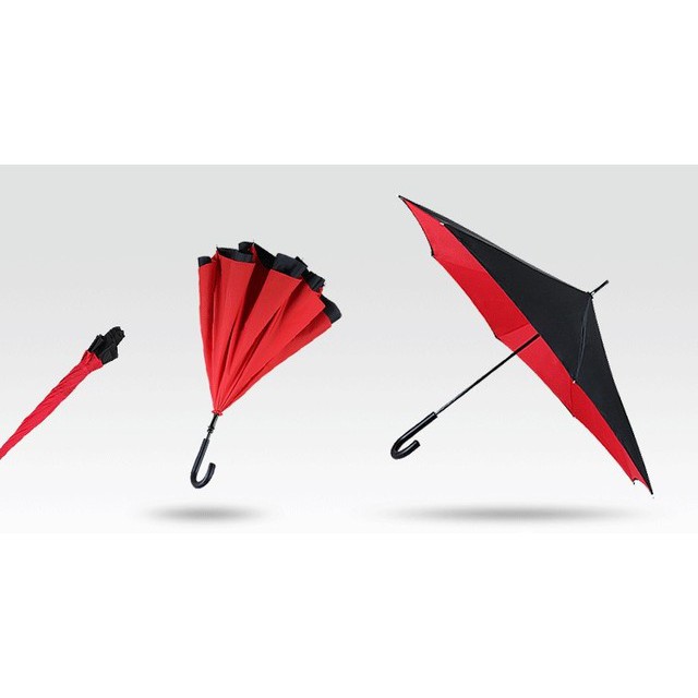 -Dù mở ngược chuyên dụng được thiết kế thiết kế mở ngược so với ô dù truyền thống, đỉnh dù nằm bên trong. Khi mở dù, ta cũng lên trên, nhưng thay vì mở sang hai bên, cánh dù sẽ đổi hướng khi kéo thanh bấm lên trên cùng. Sau khi mở hẳn, chiếc dù có hình dáng như các loại dù thông thường, nhưng lại mang rất nhiều ưu điểm trong thiết kế mới.Thiết kế tay cầm chữ C cho phép người sử dụng rảnh tay để làm thêm việc khác.
