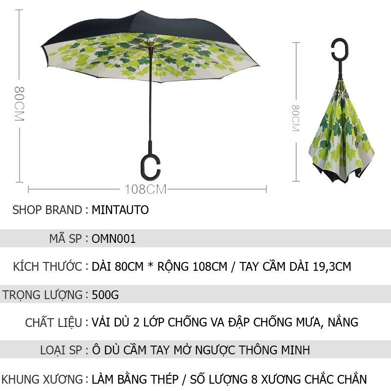 - Loại sản phẩm: Ô dù cầm tay mở ngược thông minh