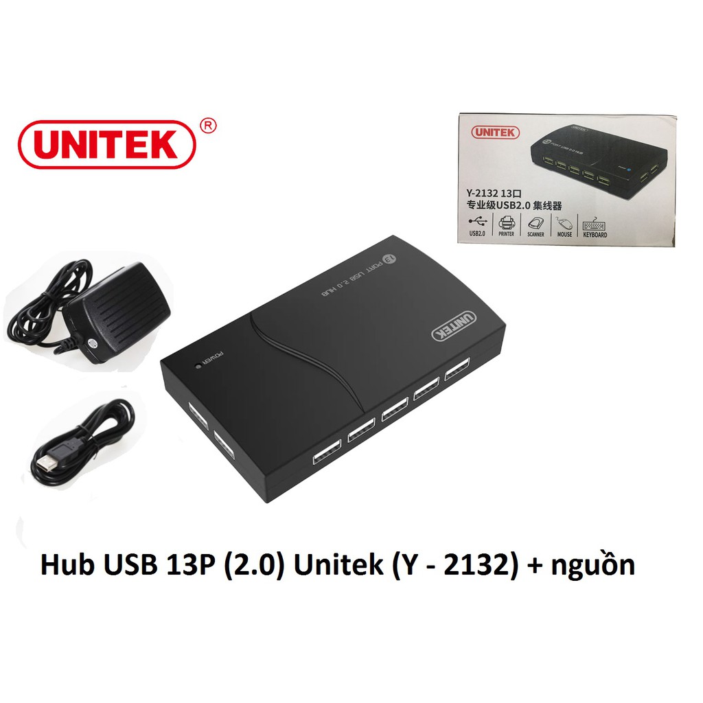 Hub USB 2.0 13 Cổng Có Nguồn Phụ Unitek Y-2132Hub chia 13 cổng USB 2.0 Y-2132 gồm 13 cổng ra và 1 cổng vào