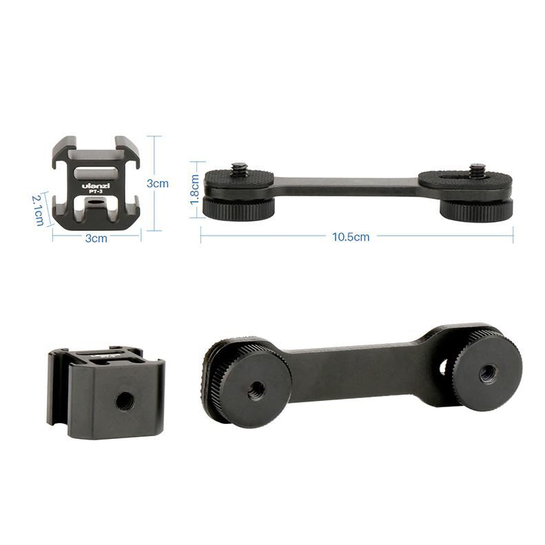 Thanh mở rộng Ulanzi PT-3 là sản phẩm sáng tạo giúp người dùng có thể gắn thêm các phụ kiện lên gimbal như Đèn, micro… lên gimbal. Điều này giúp công việc quay video trở nên chuyên nghiệp và thuận tiện hơn.Sản phẩm nhỏ gọn và tiện dụng gồm 1 thanh nối với Chân máy (tripod),Gimbal và 1 ngàm gồm 3 khe cắm (tiếng anh gọi là cold shoe mount).