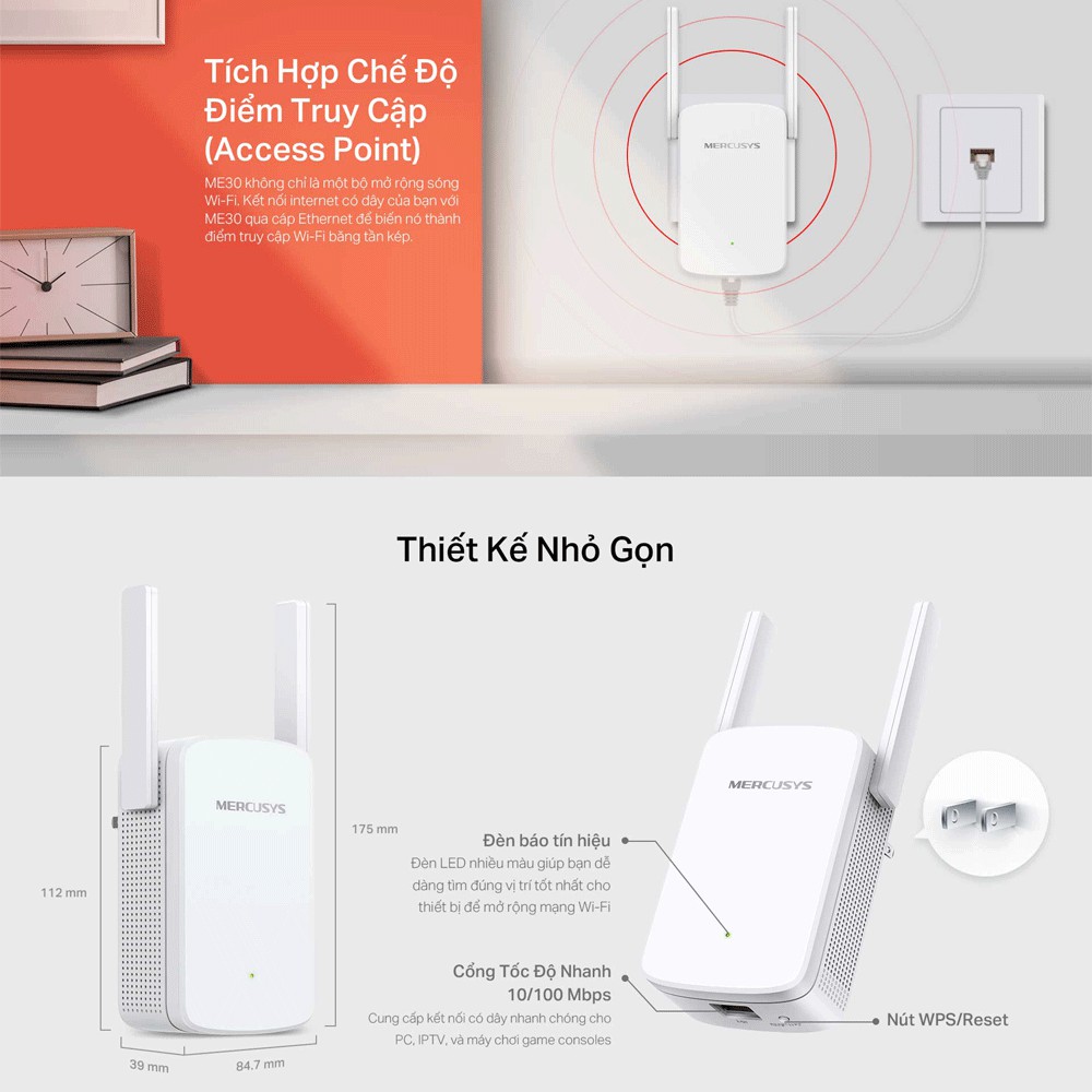 Thương hiệu: Mercusys | Xem thêm các sản phẩm Bộ kích sóng Wifi của MercusysMô tả ngắn