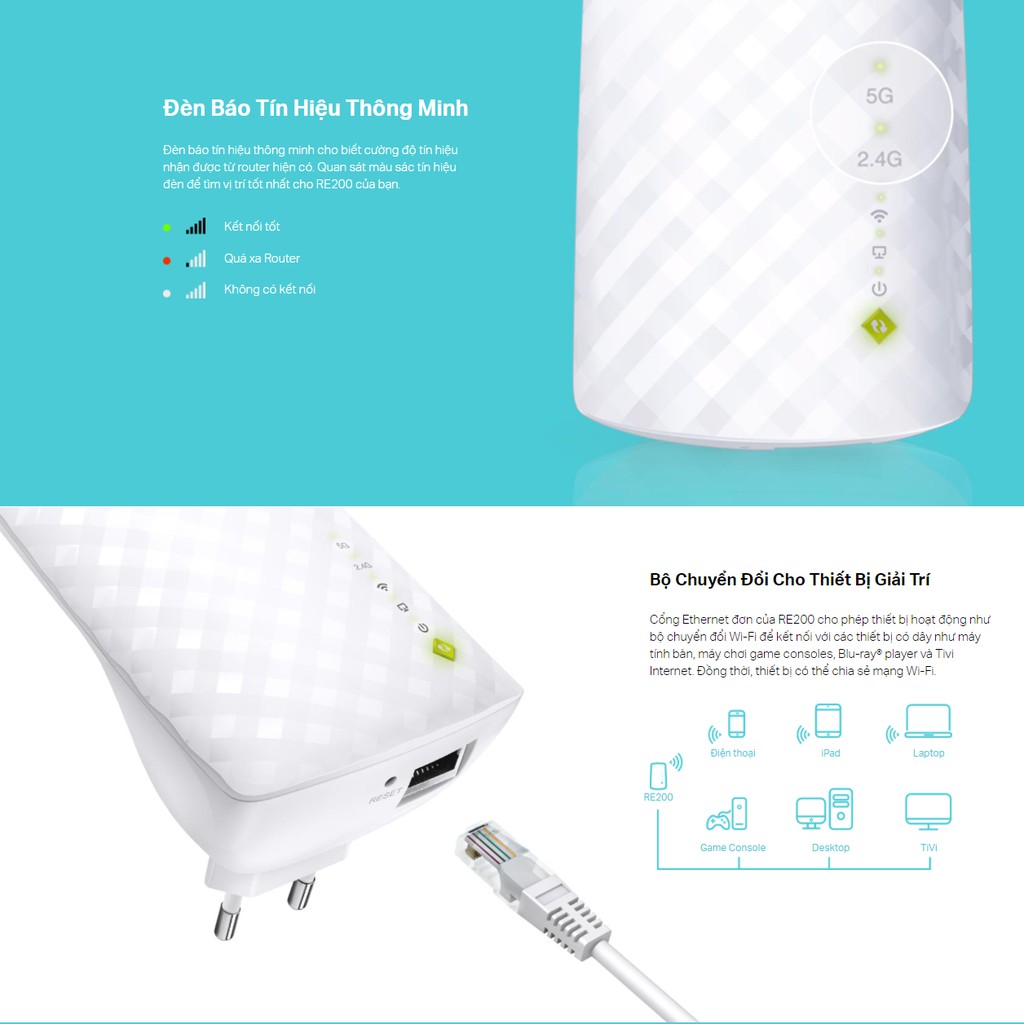 ☑ Bộ mở rộng sóng Wi-Fi RE200 AC750