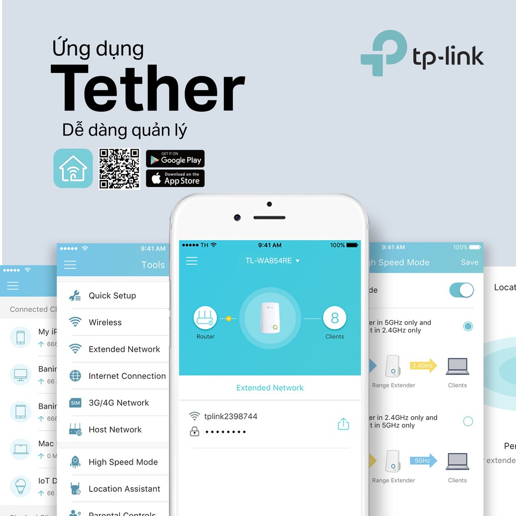 Cài đặt và quản lý dễ dàng với ứng dụng TP-Link Tether (Androi & iOS)