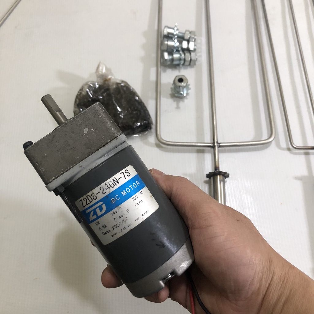 Giới thiệu Mô tơ giảm tốc 12v, 24v + bộ chế máy nướng 4 xiên