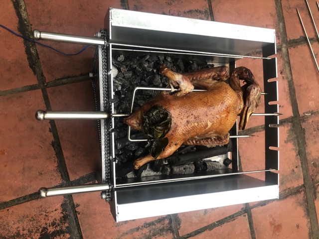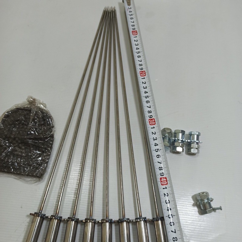 3: 8 xiên nướng inox dài , tính từ bánh răng đến điểm gác lò là 45cm